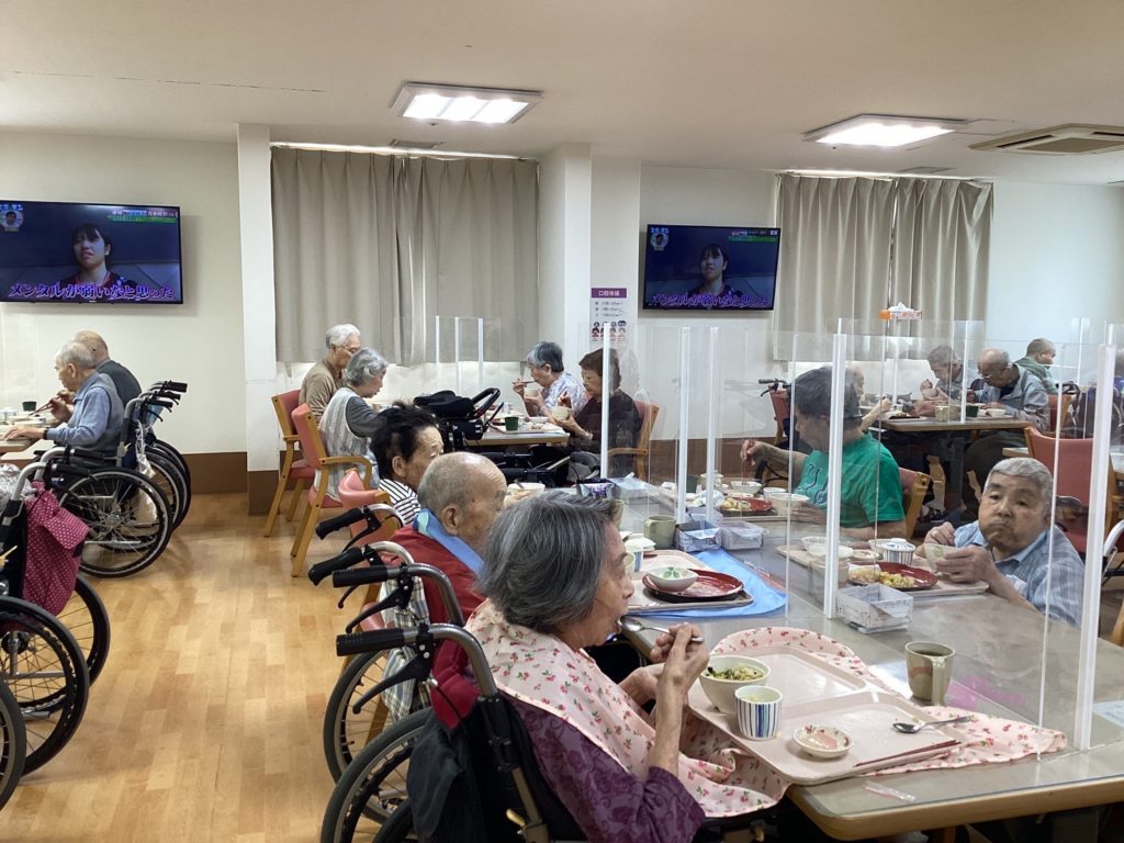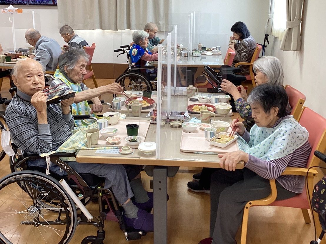 普段とは少し違う華やかな食卓に、皆様からは自然と笑顔がこぼれ、楽しそうに会話をされる様子が見られました。特に、お赤飯の赤い色合いや天ぷらの香ばしい香りは、入居者様の思い出話や昔の懐かしい味を思い出させるきっかけにもなり、食事の時間がより豊かで温かいひとときとなりました。