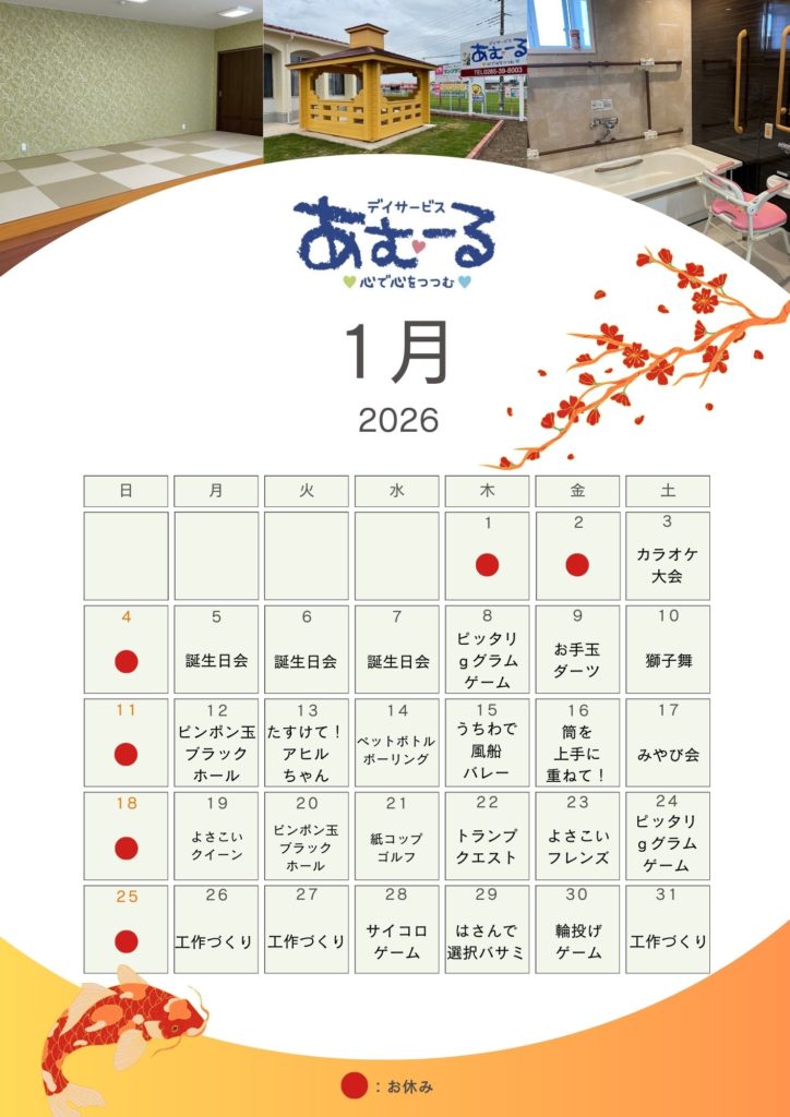 デイサービスあむーる2026年1月予定表