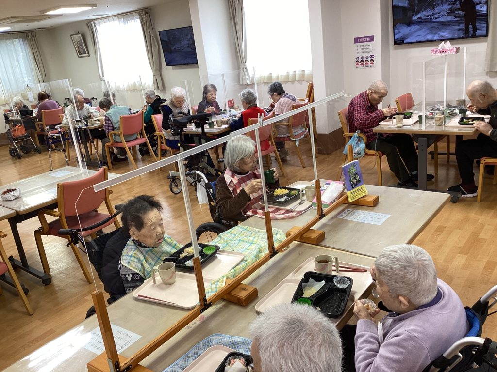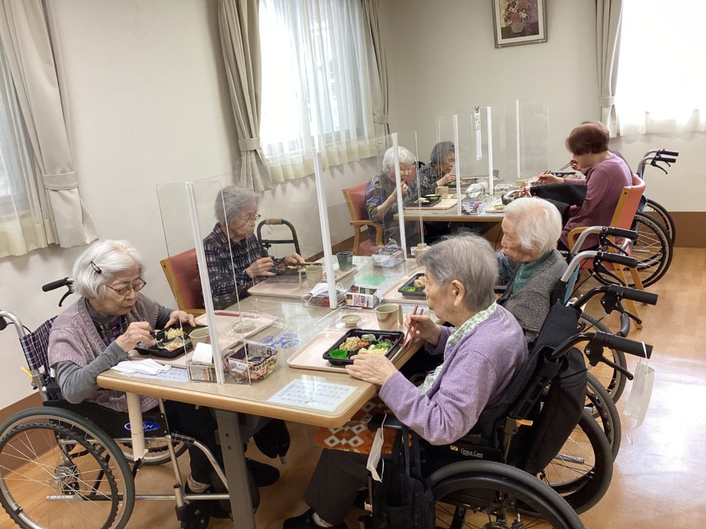 入居者様も桜を見ながら「いつもとは違うお弁当で楽しめ癒されました♪」というお言葉を頂けました。